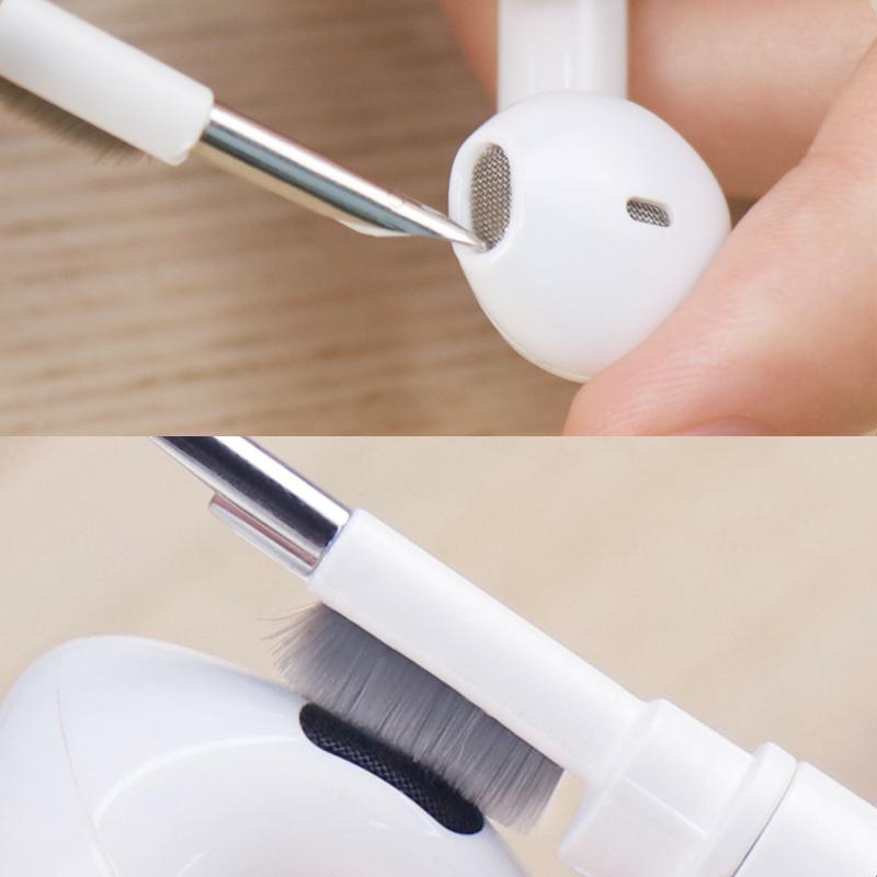 The Bluetooth earbuds cleaning pen combines three functions in one portable gadget with each part playing its role. Switch the head to use a flocking sponge, high-density brush, or metal tip, dealing with different cleaning tasks.